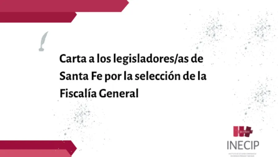 El Instituto Comparado en Ciencias Penales y Sociales (INECIP), envió una carta a los/as legisladores/as de Santa Fe señalando la responsabilidad que tendrán en el proceso de selección de la persona que, desde la Fiscalía General, conduzca el Ministerio Público de la Acusación.