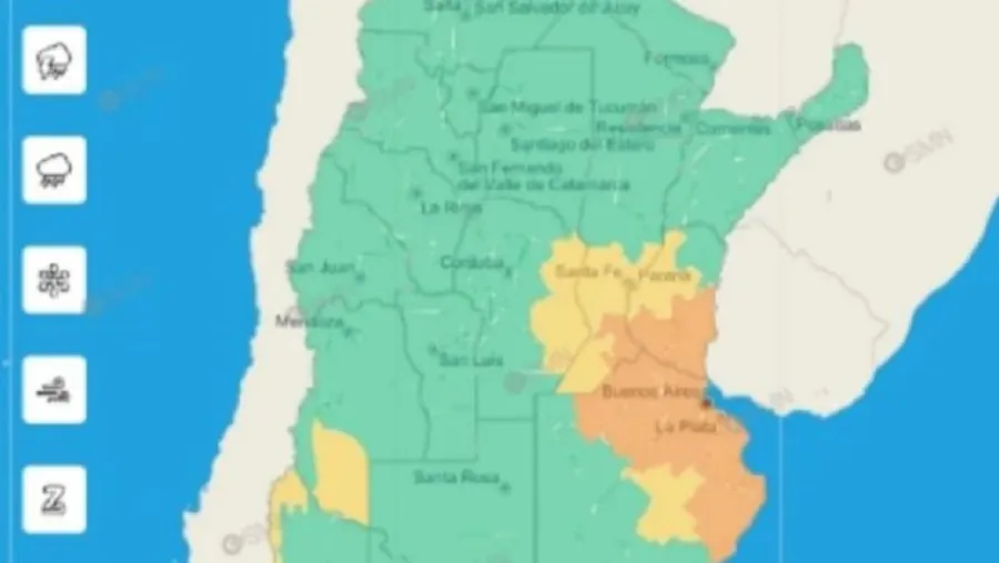 El Servicio Meteorológico Nacional (SMN) reactivó la alerta en el Área Metropolitana de Buenos Aires (AMBA) y en el sur de Santa Fe y Entre Ríos, Córdoba, San Luis y Corrientes, luego de que pronosticaran una fuerte presencia de lluvias y vientos, así como tampoco se descarta la presencia de granizo caigan del cielo a lo largo del día.