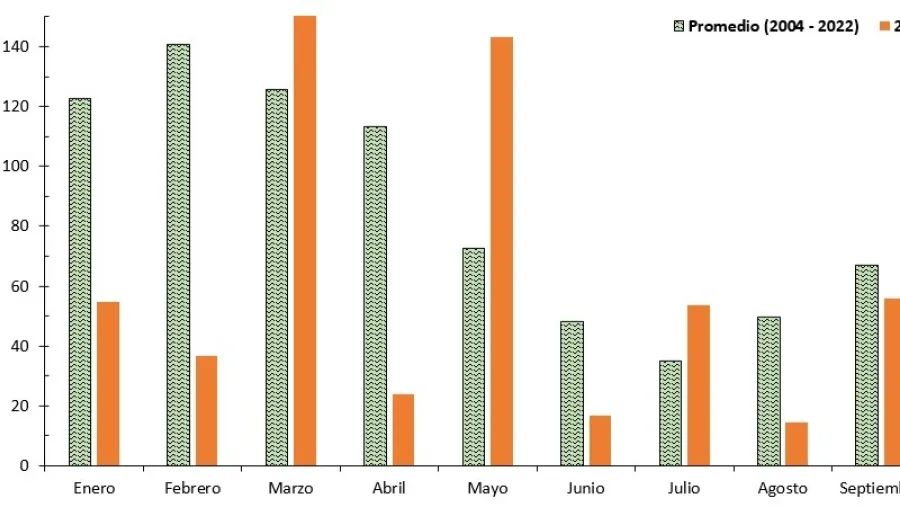 Este nivel de lluvia no está fuera del alcance de lo que puede dar el mes de octubre, sin embargo, en el informe se anticipa que “los pronósticos tienden a sostener un nivel de lluvias muy modesto, que alcanzarán los diez milímetros”.