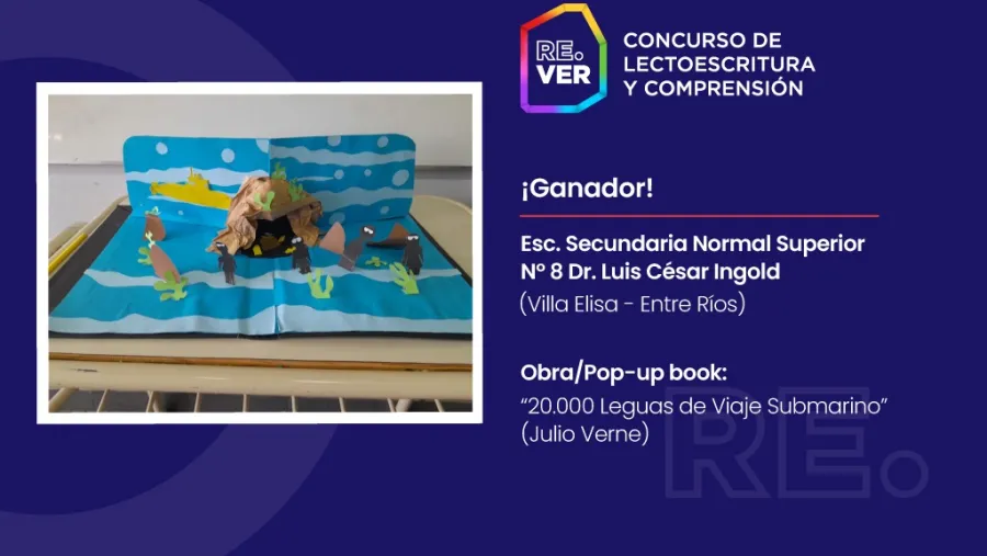 RE.VER fue lanzado en el mes de abril y estuvo dirigido a docentes de lengua, literatura y/o educación artística de escuelas secundarias de las provincias de Entre Ríos, Santa Fe, San Juan y Santa Cruz, quienes trabajaron, junto a sus estudiantes, en el desarrollo de pop-ups books que dieran cuenta del proceso de lectoescritura, comprensión y reinterpretación de un texto clásico, a través de la readaptación a este formato.