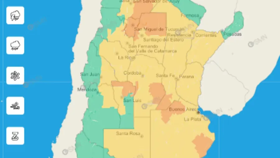 Qué provincias están afectadas por la alerta amarilla