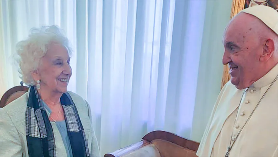 El papa Francisco recibió en El Vaticano a la titular de Abuelas de Plaza de Mayo, Estela de Carlotto, quien estaba en Roma para un acto en una universidad.