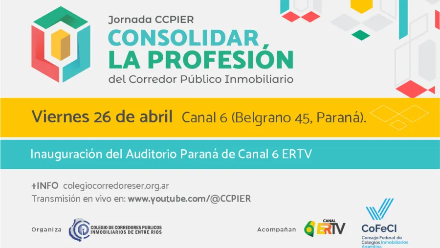 El Colegio de Corredores Públicos Inmobiliarios de Entre Ríos organiza la Jornada “Consolidar la profesión del Corredor Público Inmobiliario”. Se llevará a cabo el viernes 26 de abril, en Paraná.