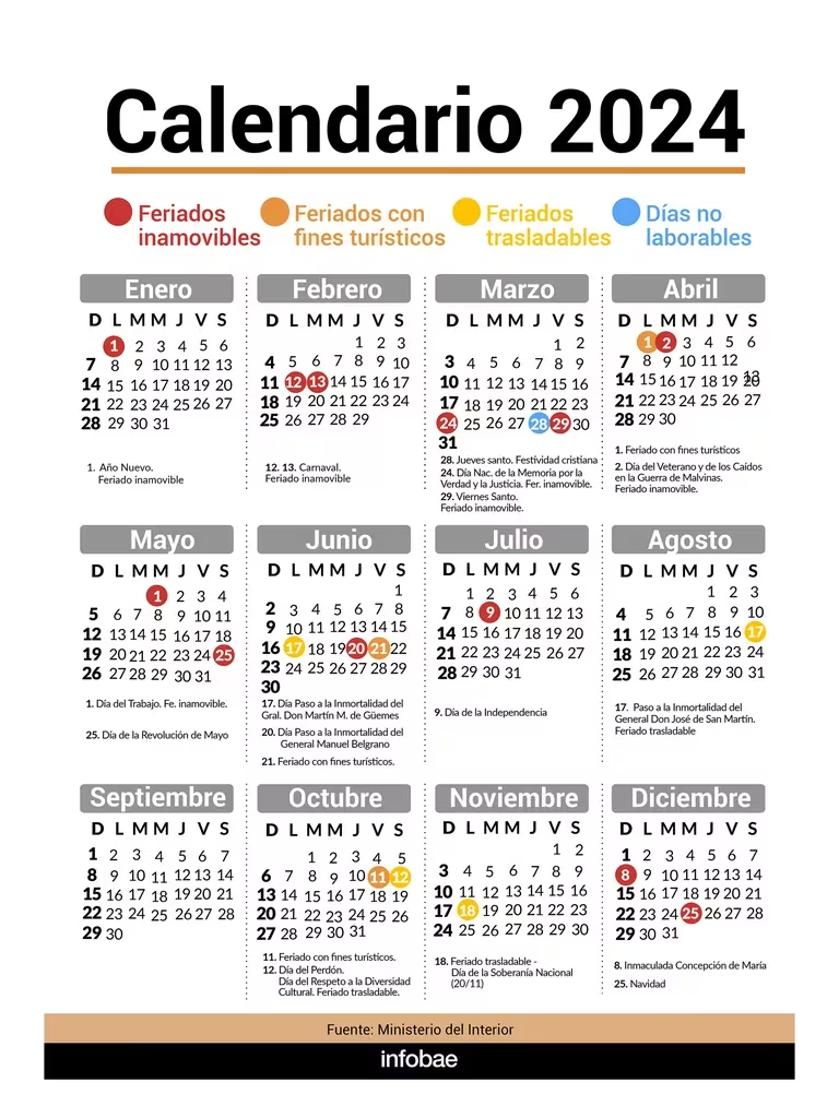 Llegando a mitad de año, los calendarios vuelven a ser consultados para descubrir qué feriados marcarán lo que queda del 2024. Los motivos pueden ser diversos: planificar una escapada, tomarse un merecido respiro o administrar de manera más eficiente el tiempo dedicado a las labores cotidianas. Cualquier razón es válida a la hora de proyectar el tiempo libre que se avecina.