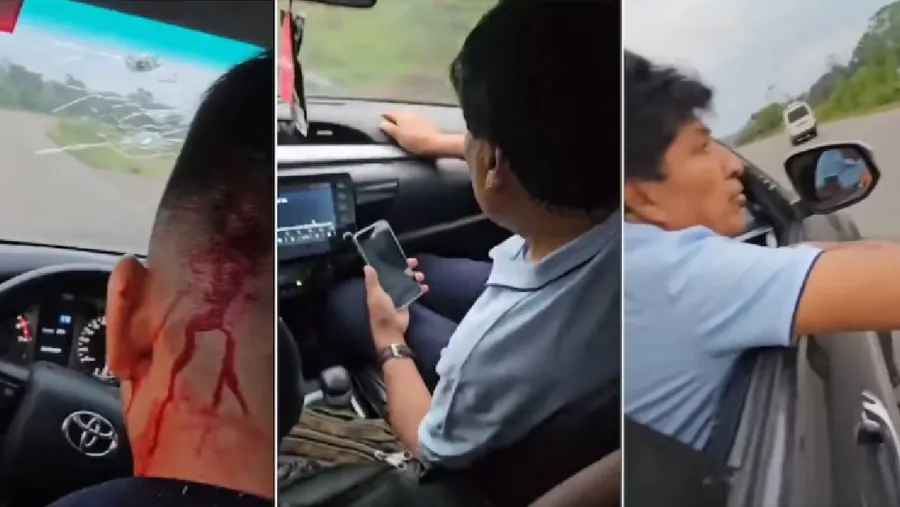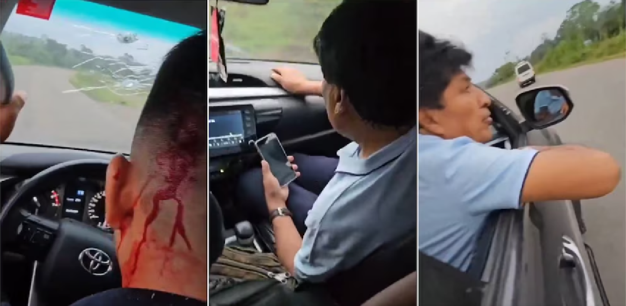 Morales señaló que esta madrugada fue blanco de un ataque mientras se dirigía de la localidad de Villa Tunari a Lauca Ñ para participar en su programa dominical en la emisora cocalera Kawsachun Coca. El ex jefe de Estado relató que un grupo de desconocidos, que iba en dos o tres camionetas, disparó varias veces al vehículo en el que se transportaba, logrando herir al conductor. Los agresores escaparon pero el hecho quedó grabado.