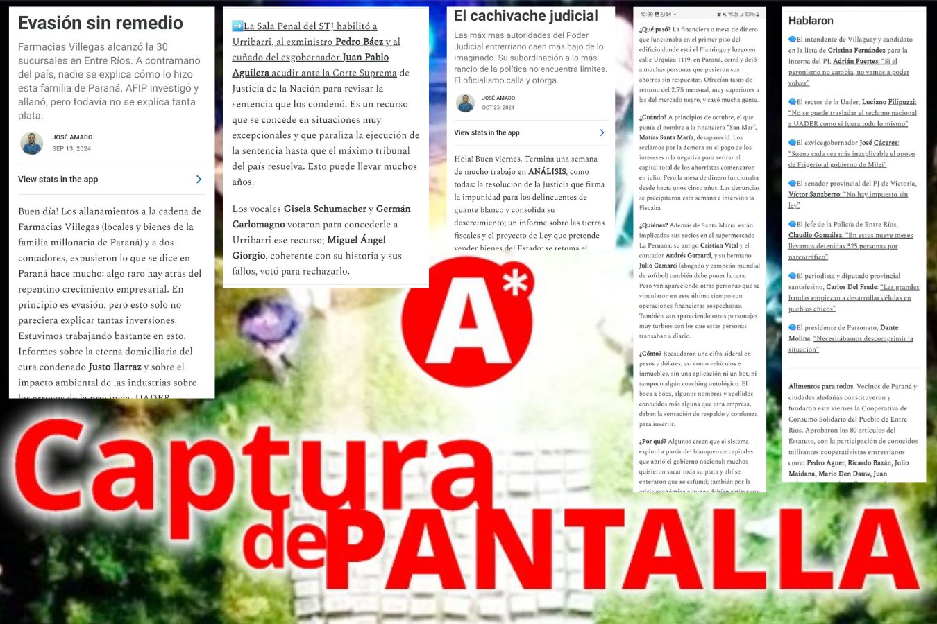 Un año y medio después de su lanzamiento, cada viernes continúa llegando a miles de suscriptores el resumen semanal de las noticias, los informes e investigaciones de los periodistas de ANÁLISIS. El boletín "Captura de Pantalla" llega al correo electrónico de nuestros lectores con las claves de lo que pasa y lo que se dice en la semana en Entre Ríos.