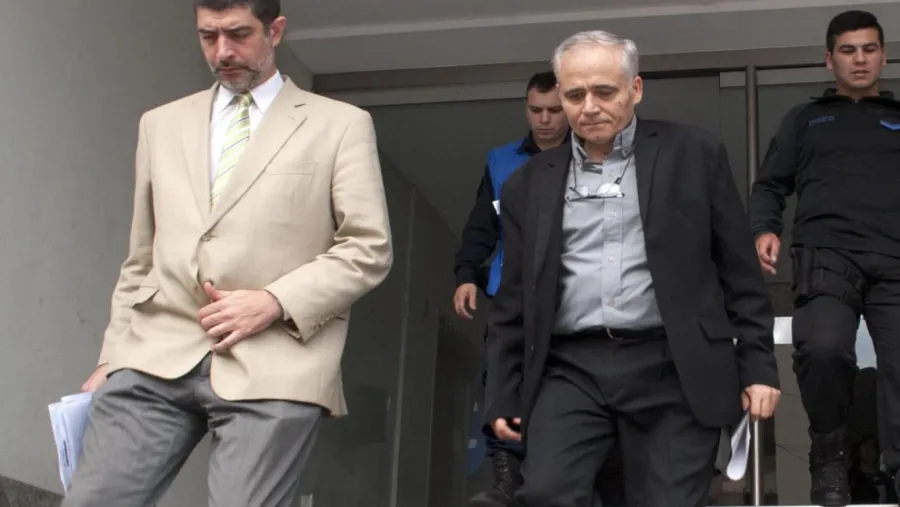 Justo José Ilarraz (de traje oscuro) junto a su abogado defensor en las escalinatas de Tribunales. (Foto: ANÁLISIS)
