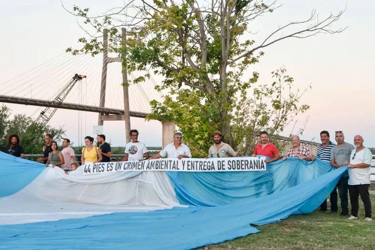 “Frente al llamado a licitación para el dragado de nuestro río que pretende volver a entregar el Paraná a manos extranjeras y convalidar un verdadero crimen ambiental decimos: 44 pies es un crimen ambiental y es entregar soberanía; entregar el Paraná es como entregar nuestra Bandera”, sostuvieron.