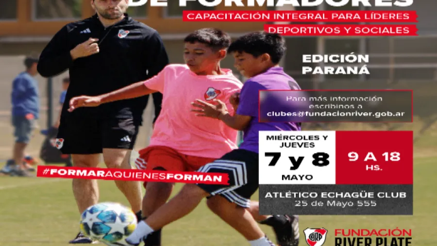 El programa Escuela de Formadores se desarrollará los días miércoles 7 y jueves 8 de mayo de 9 a 18 en las instalaciones del Atlético Echagüe Club de Paraná (25 de Mayo 555). Está destinado a profesores y profesoras, entrenadores y entrenadoras, autoridades de clubes de barrio y organizaciones sociales. Serán dos días de jornada completa en las que se abordarán temáticas relacionadas al liderazgo, educación e inclusión financiera, psicología deportiva, planificación y metodología, entre otros.