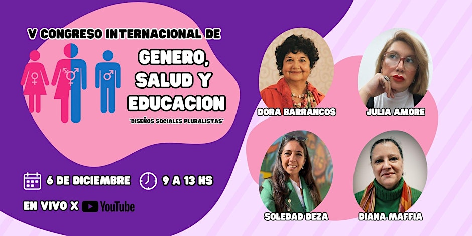 La Asociación Civil Capacitación y Trabajo organiza el 5to. Congreso Internacional de Género, Salud y Educación. El lema es “Diseños Sociales Pluralistas”. Será el 6 de diciembre de 2025, de 9 a 13 por You Tube. Las disertantes serán Dora Barrancos, Soledad Deza, Julia amore y Diana Maffia.