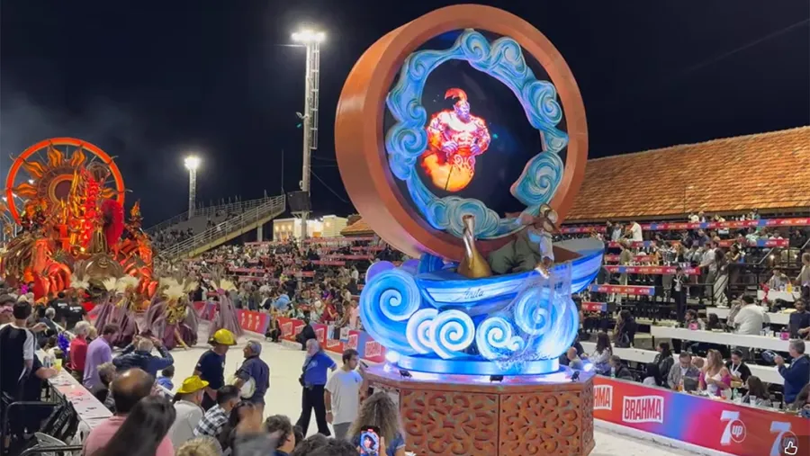 Por último, cerrará la noche Marí Marí, dirigida por Gregorio Farina, que propone este año el tema “Genios”. La comparsa Rojinegra fue la encargada de abrir la pasarela y, fiel a su historia, renovó su diálogo directo con el público, que respondió con una aclamación casi unánime. El despliegue de fantasía, elegancia y sofisticación se apoyó en carrozas imponentes y un vestuario de altísimo nivel, donde cada detalle parece pensado para provocar asombro. Marí Marí vuelve a mostrar su fortaleza tradicional: una búsqueda constante de excelencia estética, combinada con una lectura escénica que privilegia el impacto visual sin perder fluidez narrativa. La experiencia se vive como un gran fresco en movimiento, donde la técnica respalda a la emoción.