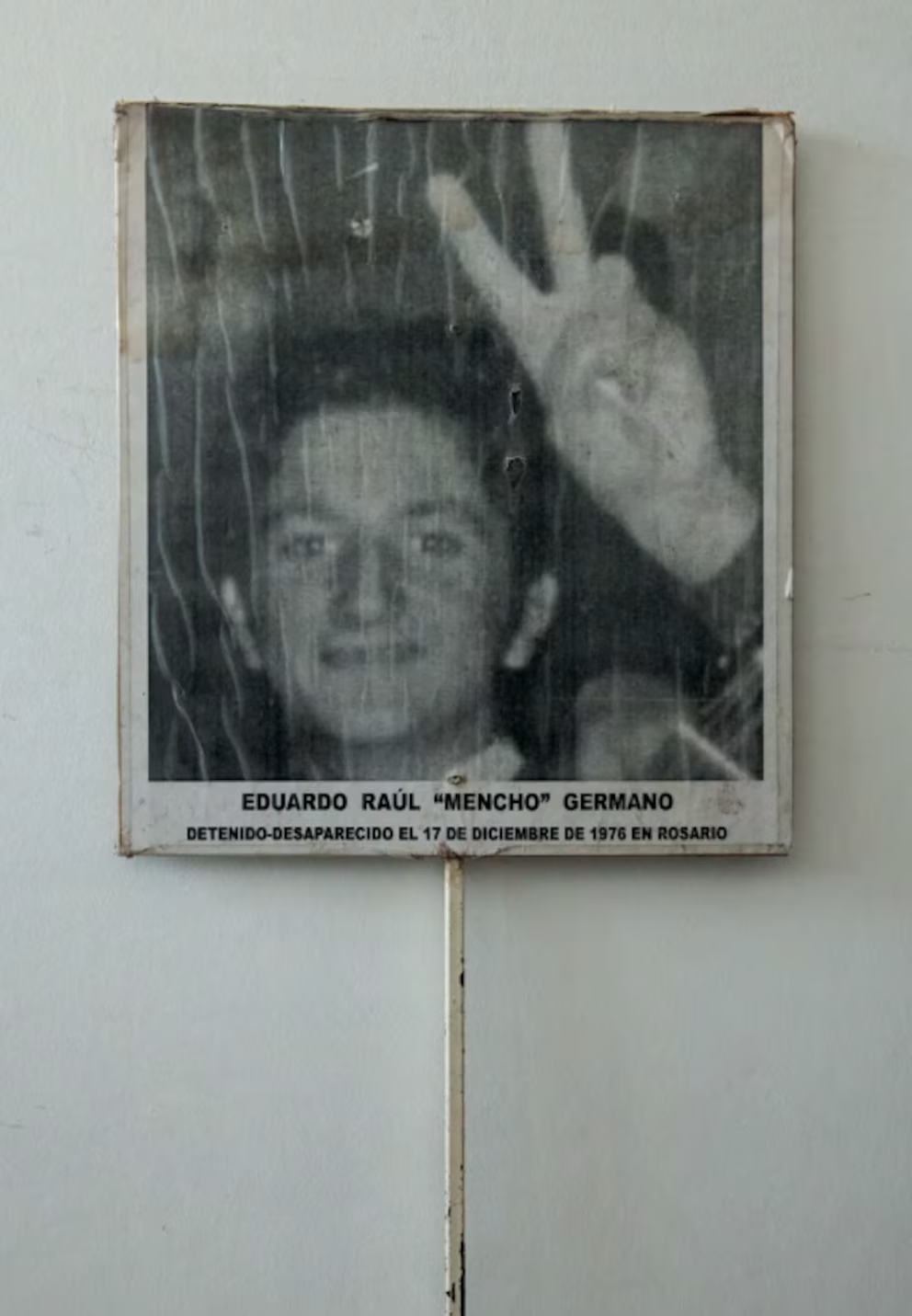 —Era un anónimo que estaba escrito a máquina en una hoja de cuaderno. Decía: “Lamentamos comunicarle que a su hijo Eduardo Daniel Germano —estaba mal el segundo nombre, se llamaba Eduardo Raúl— lo detuvieron el día 17 y posiblemente lo mataron el 26. Aunque no hay confirmación oficial”. Punto.