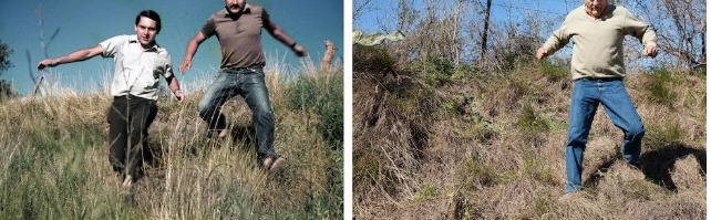 A la derecha, solo Mario Alfredo —ahora el pelo es cano— baja el terraplén.
