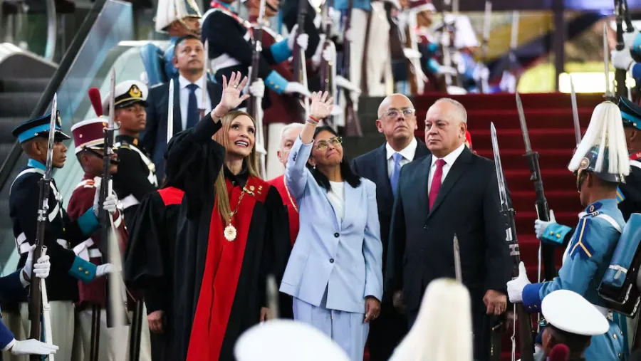 La presidenta del Tribunal Supremo de Justicia, Caryslia Rodríguez, la presidenta interina de Venezuela, Delcy Rodríguez, el presidente de la Asamblea Nacional, Jorge Rodríguez, y el ministro del Interior de Venezuela, Diosdado Cabello, durante la apertura del nuevo período judicial con magistrados del Tribunal Supremo, en Caracas, Venezuela, el 30 de enero de 2026. Palacio de Miraflores/vía REUTERS