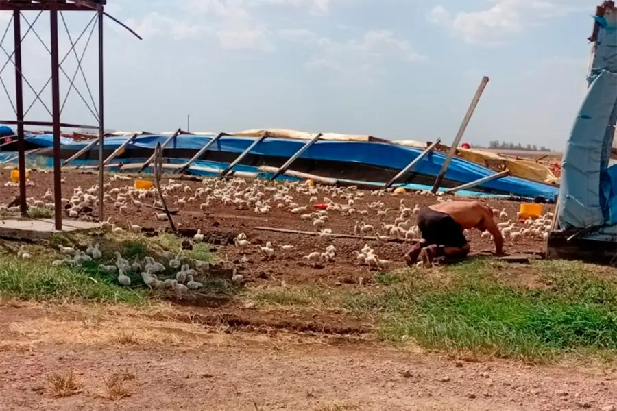 El fenómeno meteorológico se caracterizó por intensas ráfagas de viento y un marcado oscurecimiento del cielo, lo que derivó en el colapso de la estructura y afectó de manera directa la producción del establecimiento avícola, informó Catvca Noticias.