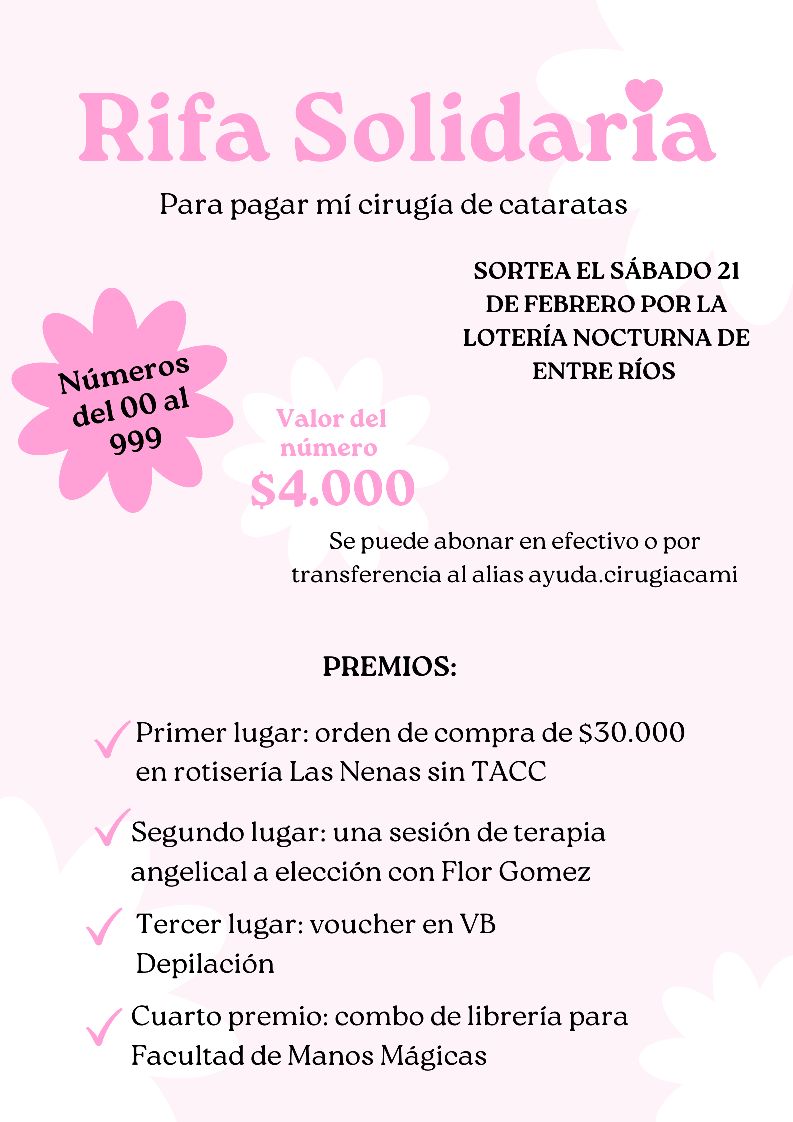 Los números tienen un valor de 4.000 pesos y pueden adquirirse a través de sus redes sociales (@soycamigomez) o mediante contacto directo (3435093240).