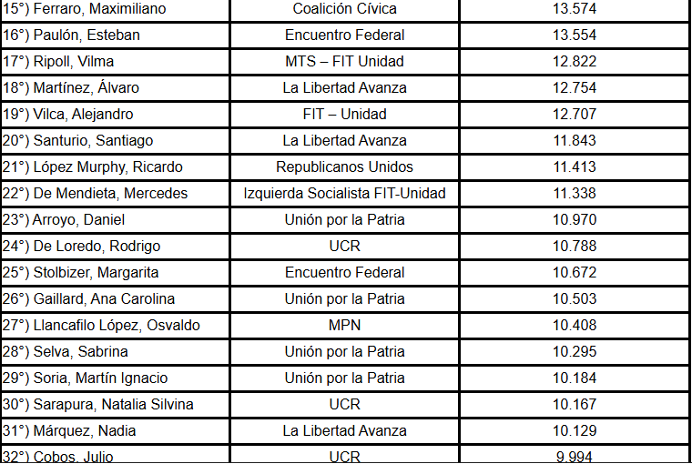 Detrás aparecen otros legisladores con alta participación, como Nicolás Massot, Silvana Giudici, Juan Manuel López, Pablo Juliano, Nicolás del Caño, Miguel Ángel Pichetto y Victoria Tolosa Paz.