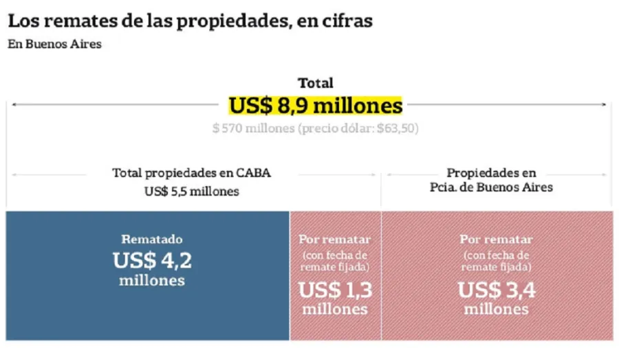 En total, el inmueble suma 507 metros y se pagó, en promedio, 2247 dólares cada uno. A eso se le debe sumar el IVA, que es una tasa especial de 10,5%, la comisión del rematador (3%) y sellado (0,25%). Todo se canceló en dólares y se recaudaron 1.140.420 millones.