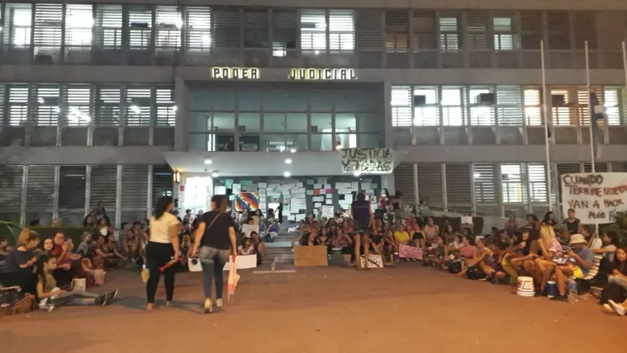 Cerca de 14 horas permanecieron "encerrados" en el edificio de Tribunales varios funcionarios judiciales y policiales, como secuela del crimen de la joven Fátima Acevedo, lo que se constituyó en un hecho inédito para toda esta instancia democrática. Sucede que un nutrido grupo de manifestantes se apostaron en las diferentes salidas del edificio judicial para no permitir que se retiren el procurador Jorge García; la adjunta, Cecilia Goyeneche; el fiscal de Género, Leandro Dato y el subjefe de Policía, José Lauman, además de otros funcionarios judiciales, si antes no daban explicaciones a la asamblea autoconvocada. El colectivo bloqueó los accesos de calle Laprida, Córdoba y Santa Fe e incluso la playa de estacionamiento ubicada sobre esta última arteria. A eso de las 6.15 de hoy, las manifestantes ordenaron levantar las protestas en las puertas de calle Córdoba y Santa Fe, pero seguían atentamente los movimientos para ver si salía alguno de los funcionarios mencionados. "Queremos demostrar que no tenemos a nadie de rehén y si se quieren ir, lo pueden hacer", remarcaron por altavoz.
