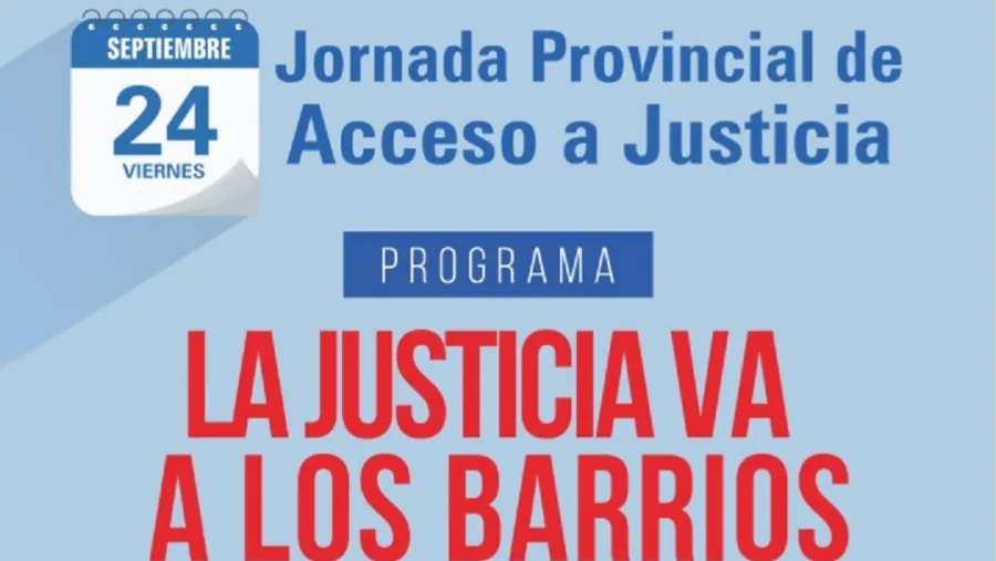 El programa "La Justicia va a los Barrios", que tiene como objetivo llevar el servicio de Justicia a los vecinos en sus lugares de residencia, realizará el viernes 24, de 9 a 12, una jornada provincial ya que todas las jurisdicciones concretarán la actividad en simultáneo.