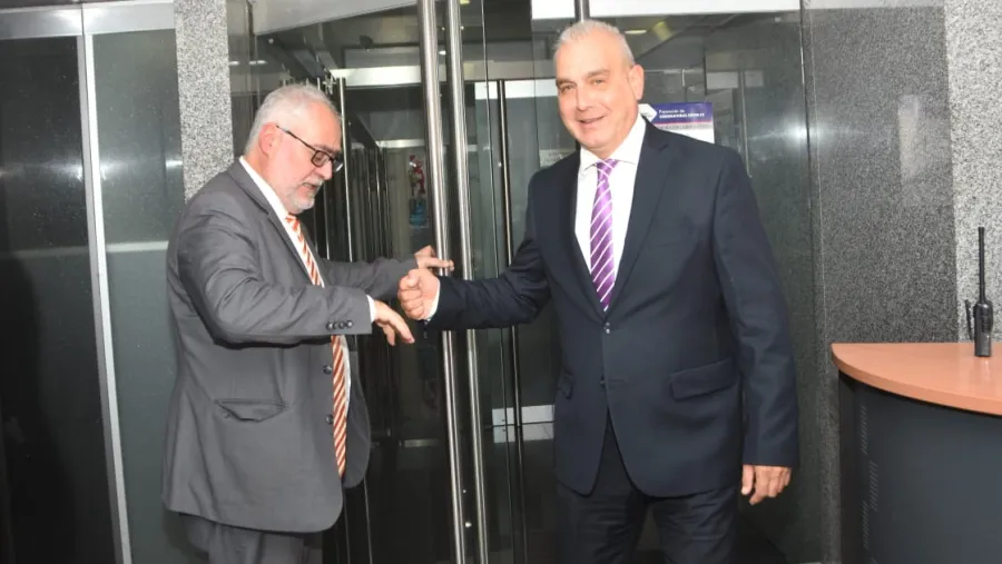 El abogado Miguel Cullen con el juez Mauricio Mayer en tribunales, hace unos 10 días atrás. (Foto: ANÁLISIS)