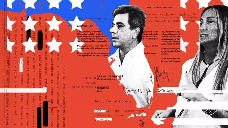 Sunstar Point fue adquirida por Romina Aldana Diago a principios de 2014 para conformar una compleja estructura financiera, de acuerdo con los documentos. En el formulario de aplicación, la abogada informó en noviembre de 2014 que sería directora, representante y beneficiaria final de la compañía offshore, radicada en Islas Vírgenes Británicas. El objetivo de la firma era “ser propietaria de una propiedad inmueble en Florida”, Estados Unidos, valuado en US$650.000.