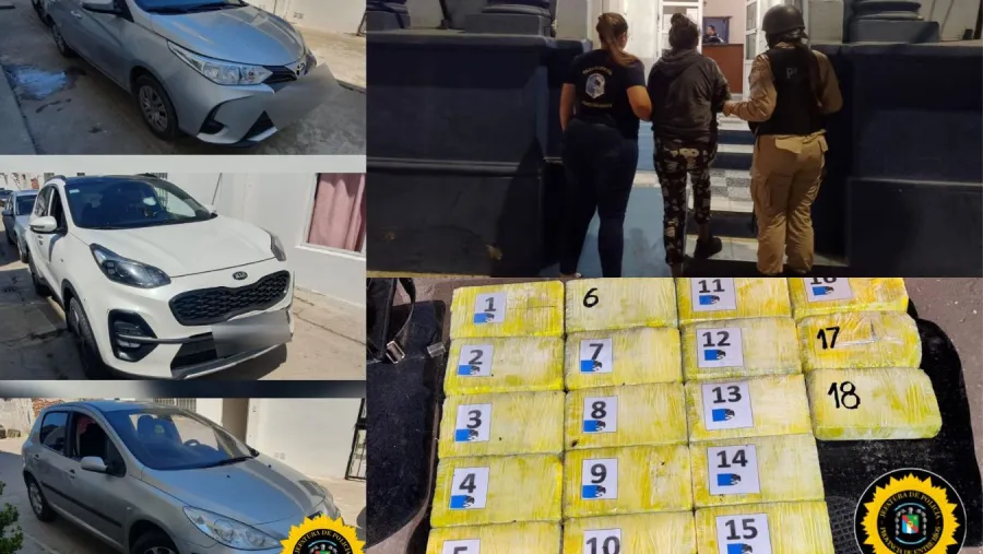 Los policías fueron a buscar el bolso que habían descartado, y allí encontraron los 18,7 kilos de cocaína. Además, tenían en el vehículo 300.000 pesos.