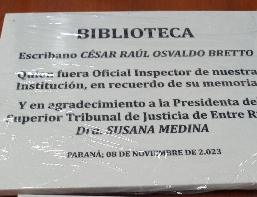 El escribano también disponía de una muy importante colección de libros clásicos, que en 2023 fue donada por Medina a la biblioteca de la Escuela de Policía Salvador Maciá. La jueza, precisamente, exigió que al espacio le pusieran el nombre de Bretto, pese a que su excolaborador fue solamente cuatro años oficial de la institución y tuvo algún escaso tiempo como docente.