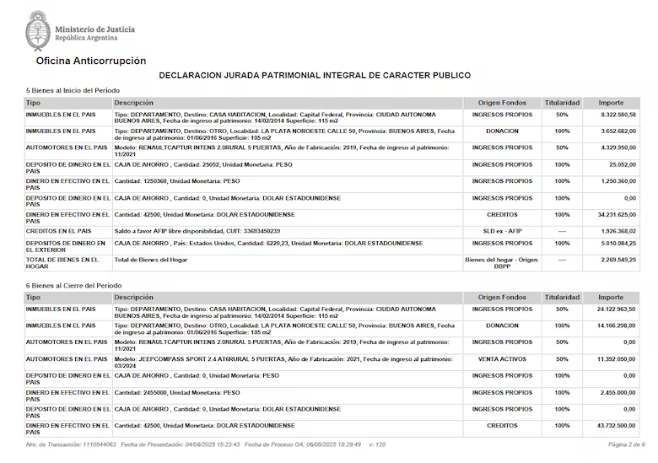 Pero no está claro si la casa en el country figura en el anexo reservado con los bienes de Angeletti. Los funcionarios públicos están obligados por ley a declarar el patrimonio de sus cónyuges, pero ese archivo no se puede consultar en línea; es facultad del Ministerio de Justicia decidir si lo da a publicidad o no ante el pedido de un particular o una entidad interesada. En cambio, sí debe entregarlo a pedido de una autoridad judicial. Esto es así desde 2013, cuando el kirchnerismo impulsó una reforma de la Ley de Ética Pública que fue muy cuestionada por restringir el acceso a datos patrimoniales de los funcionarios.