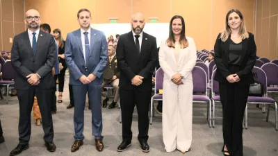El presidente del Superior Tribunal de Justicia (STJ), vocal Leonardo Portela, junto a la vicepresidenta Laura Mariana Soage, al vocal Daniel Carubia y la vocal Claudia Mizawak, tomó juramento a jueces y juezas de Garantías de Concordia, Colón y Villaguay.