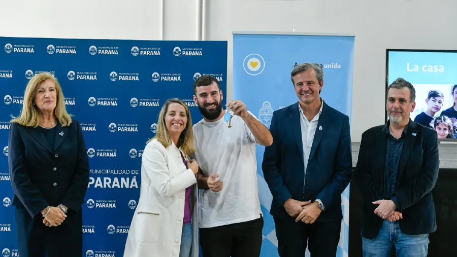La vicegobernadora Laura Stratta, acompañada por el subsecretario de Política de Suelo y Desarrollos Habitacionales de la Nación, Juan Pablo Negro, y el intendente Adán Bahl, entregaron las llaves de las nuevas viviendas a las familias adjudicatarias. La actividad se realizó este martes en la Sala Mayo de la capital entrerriana.