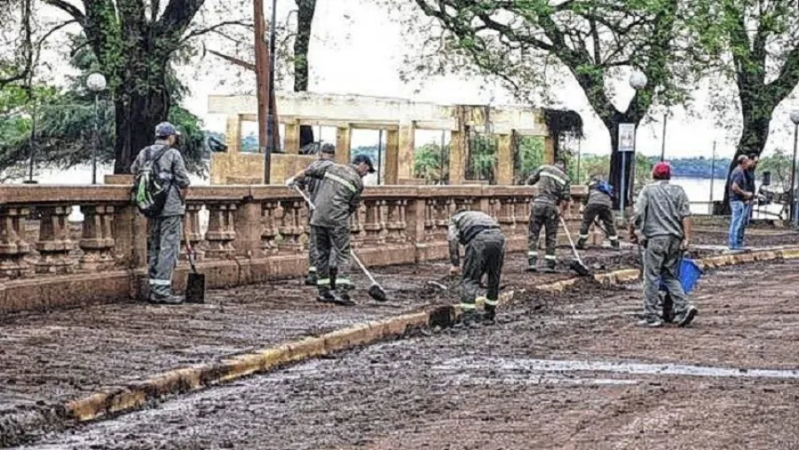 Tras la bajante del río Uruguay y que las condiciones meteorológicas lo permiten, personal de la Secretaría de Desarrollo Urbano de la Municipalidad de Concordia se encuentra abocado a la limpieza de los sectores que se vieron afectados por la inundación.