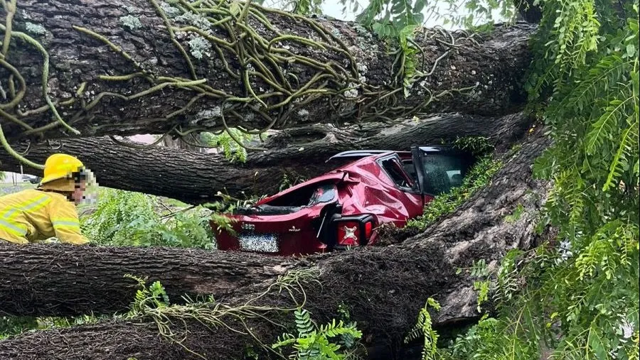 El Servicio Meteorológico Nacional (SMN) mantiene el alerta "Naranja" por tormentas fuertes en toda la provincia. En ese marco, por los fuertes vientos, un árbol ubicado en la vereda de Plaza Independencia cayó y aplastó una camioneta Jeep que estaba estacionada.