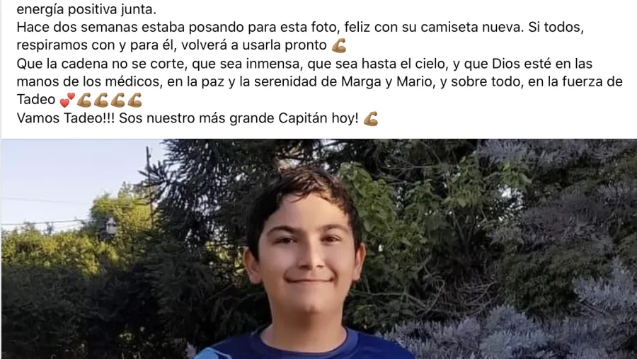 El diagnóstico de Tadeo Martínez, por quien en redes sociales por estas horas se piden cadenas de oración, fue confirmado por la Dirección de Epidemiologia del Ministerio de Salud de Entre Ríos.