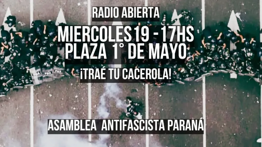 La Asamblea Antifascista de Paraná, convocó a manifestarse este miércoles a las 17 a la Plaza 1° de Mayo, en apoyo a los jubilados. “Traé tu cacerola”, instaron desde la organización que ya realizó una primera protesta la semana pasada.