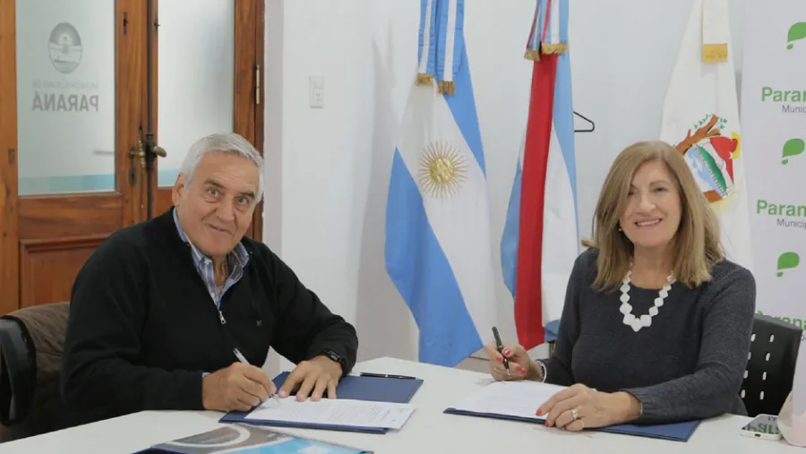 El representante del Gobierno de Entre Ríos en el Túnel Subfluvial, Eduardo López Segura, y la intendente de la ciudad de Paraná, Rosario Romero, rubricaron esta mañana un convenio de colaboración para avanzar con cuestiones inherentes a temas de infraestructura en ese acceso a la capital entrerriana.