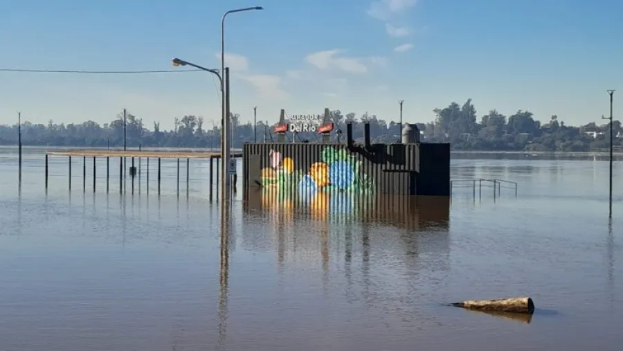 Con este incremento del caudal, el agua avanzó sobre la costanera cubriendo parcialmente el container de un parador gastronómico y ganando terreno en sectores del tradicional paseo de la ciudad.