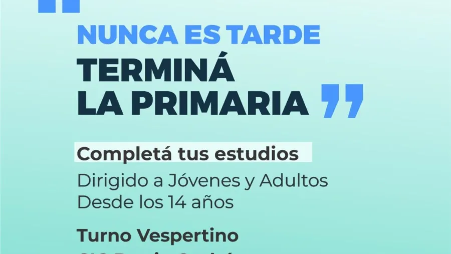 En ese marco, se encuentra abierta la inscripción para terminar la escuela primaria, una propuesta orientada a jóvenes y adultos desde los 14 años, con cursado en turno vespertino en el CIC Barrio Ombú. La convocatoria apunta a acompañar a quienes por distintos motivos no pudieron finalizar sus estudios, ofreciendo un espacio accesible y cercano para retomar su formación.