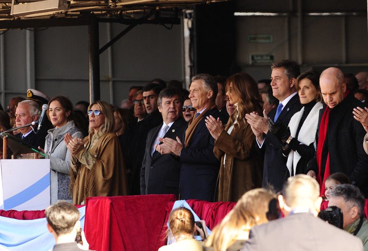 En el palco, escuchaba todo el gabinete nacional - Nicolás Dujovne a la cabeza-, la gobernadora María Eugenia Vidal, Horacio Rodríguez Larreta, antecesores de Pellegrina como Luciano Miguens y Hugo Biolcatti y empresarios, como Eduardo Eurnekian (Aeropuertos) y Cristiano Rattazzi (Fiat).