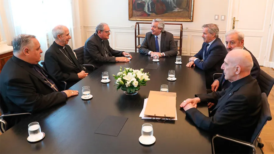 El presidente Alberto Fernández recibió esta mañana en la Casa Rosada a la cúpula de la Conferencia Episcopal Argentina, que asistió al encuentro encabezada por su presidente y obispo de San Isidro, Oscar Vicente Ojea. La Iglesia le deseó al mandatario nacional los "mejores deseos" durante el tradicional saludo antes de las fiestas de fin de año. El presidente resaltó que nunca estuvo tan "identificado" con la Iglesia como durante el pontificado del Papa Francisco.