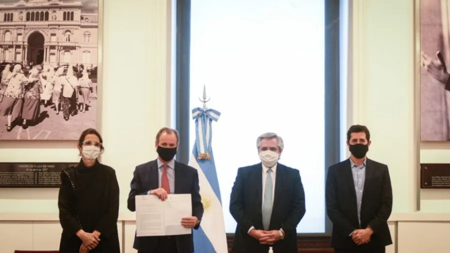 El presidente Alberto Fernández encabezó este martes en la Casa Rosada la firma de una serie de convenios con los gobernadores de Entre Ríos, Gustavo Bordet; Buenos Aires, Axel Kicillof; y Santa Fe, Omar Perotti, que adhirieron al plan Argentina Construye, cuyo objetivo realizar obras de infraestructura sanitaria y de equipamiento y viviendas en el marco de la emergencia por el coronavirus COVID-19.