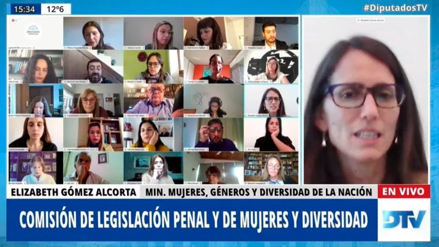 La ministra de las Mujeres, Géneros y Diversidad de la Nación, Elizabeth Gómez Alcorta, expuso este lunes ante el plenario de las comisiones de Legislación Penal y de Mujeres y Diversidad de la Cámara de Diputados de la Nación, sobre unos 50 proyectos con estado parlamentario para prevenir la violencia por motivos de género hacia mujeres.