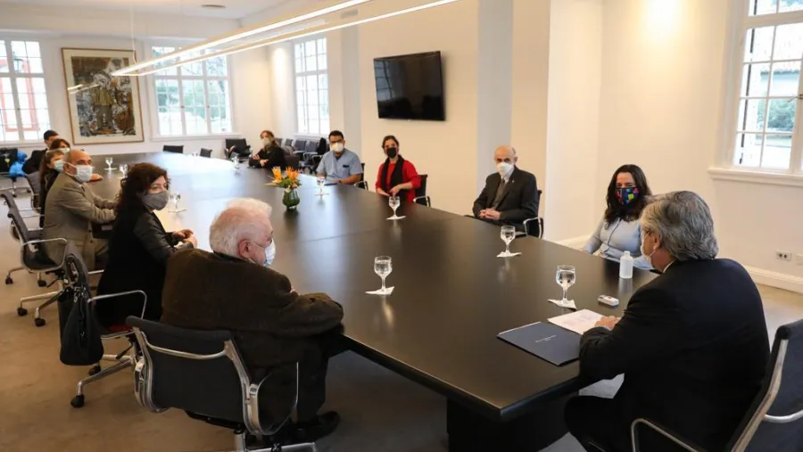 El presidente Alberto Fernández recibió este miércoles, en la residencia de Olivos, a un grupo de terapistas y trabajadores de la salud para interiorizarse sobre el trabajo que desarrollan en el marco de la pandemia de coronavirus y luego de la carta abierta difundida ayer por la Sociedad Argentina en Terapia Intensiva (SATI).