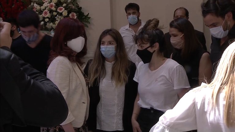 La vicepresidenta puso un rosario sobre el féretro y se quedó unos segundos frente al cajón. Luego volvieron a arrimarse al salón el ministro del Interior, Eduardo “Wado” De Pedro, y el secretario presidencial, Julio Vitobello. Ambos estuvieron muy cerca de la familia durante toda la mañana intentando mantener la organización y buscando un acuerdo para extender la jornada, publicó Infobae.