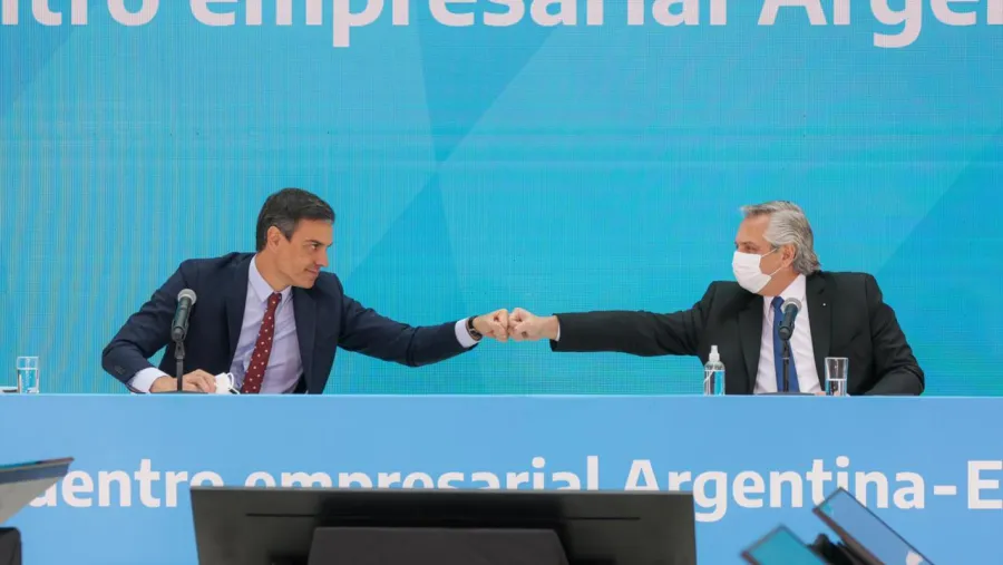 El presidente Alberto Fernández y el presidente del Gobierno de España, Pedro Sánchez, encabezaron una reunión de trabajo con una veintena de empresarios españoles y argentinos en el Museo del Bicentenario de la Casa Rosada, al término de la cual dirigieron unas palabras a los presentes.