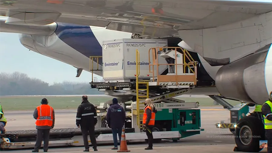 La llegada del nuevo lote de vacunas de AstraZeneca al Aeropuerto Internacional de Ezeiza fue a través del vuelo LH510 de Lufthansa.