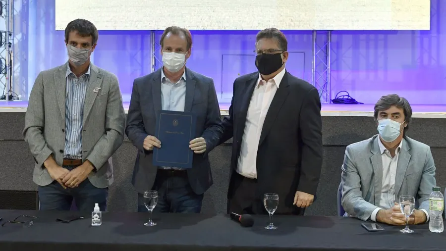Bordet, junto al intendente de Concordia, Alfredo Francolini; al secretario de Infraestructura y Política Hídrica de la Nación, Carlos Augusto Rodríguez; y al administrador del Ente Nacional de Obras Hídricas de Saneamiento (Enohsa), Enrique Cresto, abrió los sobres de la obra Construcción Costanera Nebel.