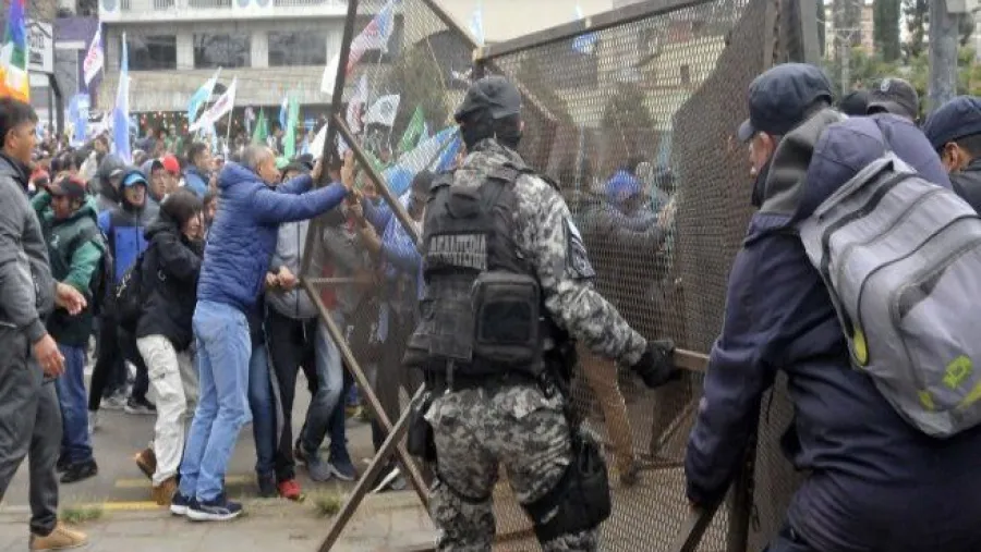 El avance policial se registró poco después de las 11, a unos 200 metros del parlamento provincial, donde el gobernador Gerardo Morales encabezó la sesión de jura de la reforma de la Carta Magna. Mientras tanto, afuera de la Legislatura la violencia se hizo presente.