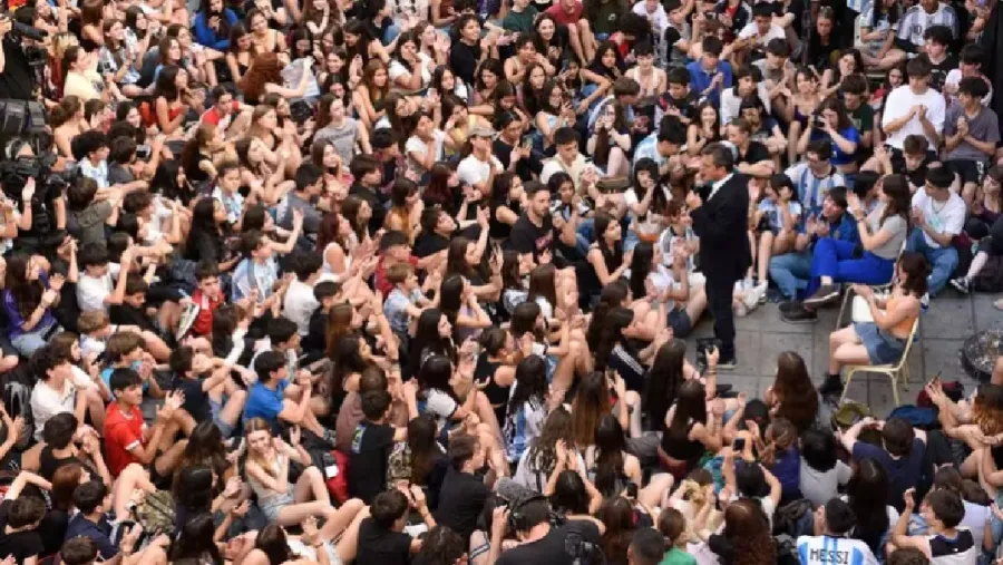 Massa estaba relajado, en un ambiente extremadamente distinto al que tuvo en su disertación en el Consejo de Inversiones para el Comercio y la Producción (Cicyp), minutos antes de zambullirse en una marea de chicos que le pidieron ganar la elección del domingo y defender la educación pública como un valor fundamental de su eventual gestión. El ministro se reía frente a la ocurrencia de algunos alumnos que lo miraban con atención. Fue un cierre atípico, sin dirigencia política, sin gremios ni banderas.