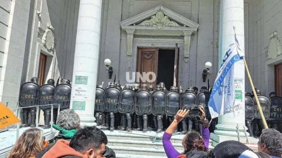 Manifestantes de gremios docentes y estatales se apostaron fuera de la Legislatura desde temprano e incluso quisieron ingresar al recinto para estar presentes en la votación. En el operativo policial se habían colocado vallas en los accesos laterales y traseros a la Legislatura, aunque horas después fueron retiradas.